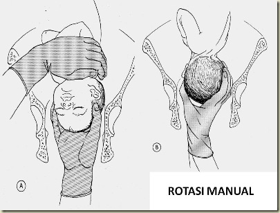 - Bila rotasi > 450 atau jenis tindakan “mid pelvik” : pada posisi sutura sagitalis melintang pilihan cawan penghisap adfalah dari jenis yang kaku atau dari “stainless steel“. Ekstraksi cunam pada kasus ini hanya boleh dikerjakan oleh operator yang sangat berpengalaman.